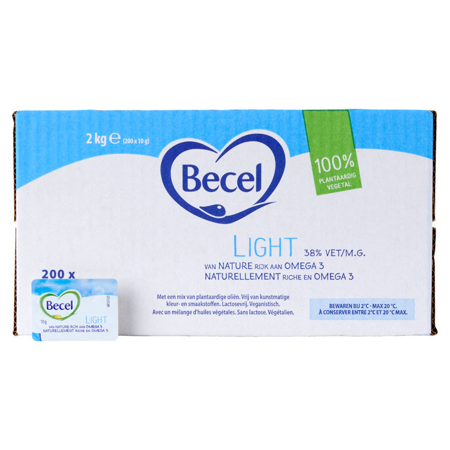 Becel 奶油塗光 歐米加3。 Becel Light 是一種美味、新鮮的麵包醬,100% 是蔬菜。 Becel Light 特別適合想要控制卡路里攝取量的人,它的卡路里含量比 Becel Original 少 30%。