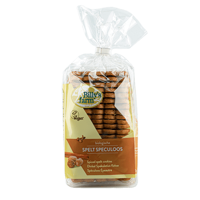 材料:斯佩耳特小麥粉* 41%、棕櫚油*(非氫化)、玉米麥芽糖漿*、棗糖漿*、全麥斯佩耳特小麥粉* 16%、大麥麥芽糖漿*、香料* 1%(肉桂*、肉荳蔻*、丁香*)、蘋果汁*、膨鬆劑(碳酸氫鹽等低荳蔻*。 * = 有機