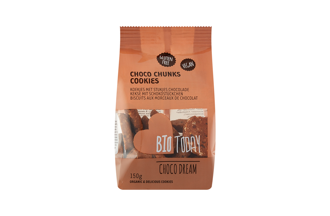 BioToday 巧克力塊餅乾。 BioToday 的巧克力塊餅乾是完美的零食。這些餅乾是純素食且不含麩質的。所以,這對世界和你的身體都有好處。它們還富含纖維,給你一種飽足感。