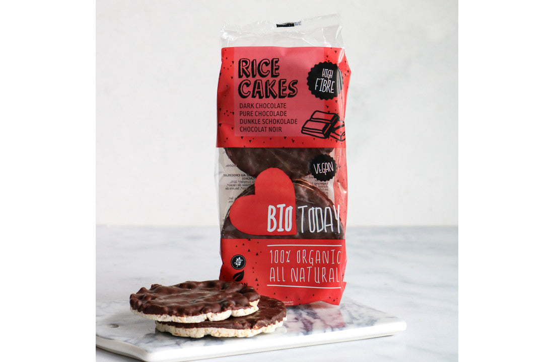 BioToday 有機米餅黑巧克力。BioToday 巧克力米餅作為零食非常美味。這些無麩質華夫餅由膨化全麥大米製成,外面覆蓋一層黑巧克力 (80%),並用未精製的椰子花糖增甜。華夫餅熱量低,而且由於巧克力不含牛奶,因此也適合素食主義者。