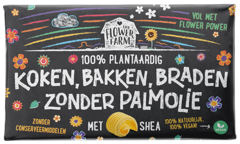 關於花卉農場:我們的使命是阻止棕櫚油種植園對熱帶雨林的砍伐。這就是為什麼在我們的 100% 植物性人造奶油中,棕櫚油已被乳木果油取代。
