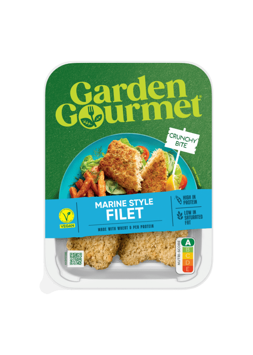 食材:再水化組織小麥蛋白,44%(水,小麥蛋白 11%,小麥粉 3%),水,麵包屑 14%(小麥粉,鹽,酵母,菜籽油,辣椒萃取物),不同比例的植物油(菜籽油,葵花油),小麥粉,豌豆蛋白2.5%,酒精醋,穩定劑(甲基纖維素),鹽,天然香料,香料(洋蔥粉,白胡椒),蒔蘿,醬油粉(大豆,小麥,鹽)。