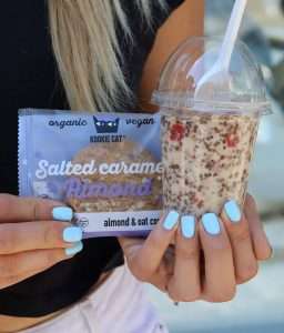 Kookie Kat 有機鹹焦糖杏仁餅乾。人人都愛餅乾!它的味道、香氣,還有祖母烘焙時的甜蜜回憶。我們珍惜這些珍貴的時刻,並希望將它們融入您的日常生活。 Kookie 貓餅乾以現代的方式傳承傳統。鹹焦糖口味的餅乾以最美味的方式融合了堅果和燕麥的益處!這款餅乾是純素食、無麩質且不含精製糖的。它證明了純素食可以而且必須被視為美味!這款餅乾還: