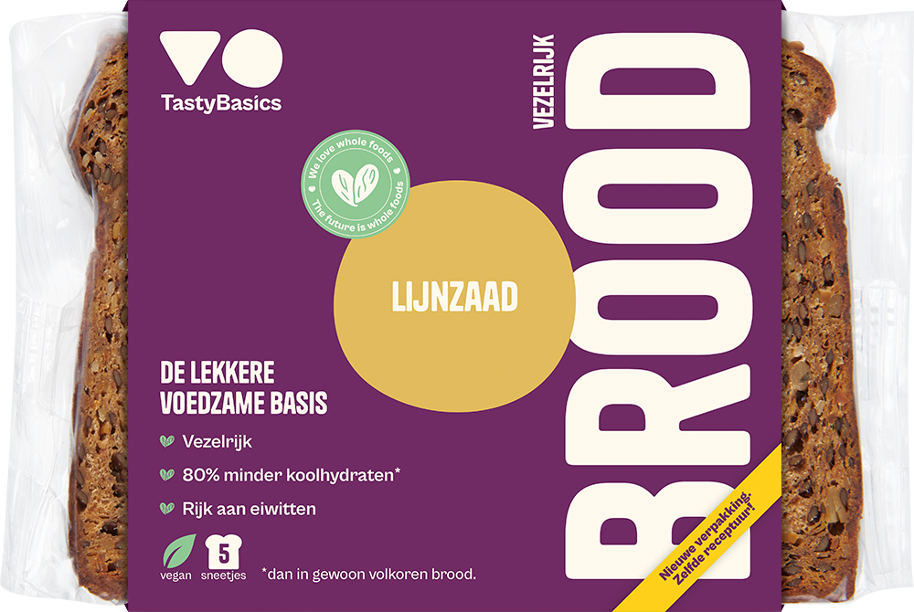 TastyBasics 亞麻籽麵包,富含纖維,低碳水化合物。碳水化合物含量減少 80%,是開啟美好一天的理想選擇,也可作為午餐的一部分。我們的麵包富含亞麻籽、葵花籽和芝麻等原料。