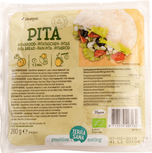 Terrasana 有機皮塔餅麵包 4x。皮塔餅很受歡迎。皮塔麵包很快就準備好了,您可以輕鬆地在其中填入芝麻醬、鷹嘴豆泥或香蒜醬以及您最喜歡的蔬菜。如果您想要快速、健康的午餐,這是必不可少的!您可以用多種不同的方式在皮塔餅麵包中加入美味的蔬菜、熟食產品和調味料。這樣,您就可以享受美味可口的有機麵包,同時做出明智的選擇。這些皮塔餅麵包採用傳統方法,採用 100% Lemaire 麵粉或過篩的全麥麵粉製成。烘烤後具有美味濃鬱的味道和美妙的酥脆結構。例如,與酸奶黃瓜醬、鷹嘴豆泥或香蒜醬完美搭配。