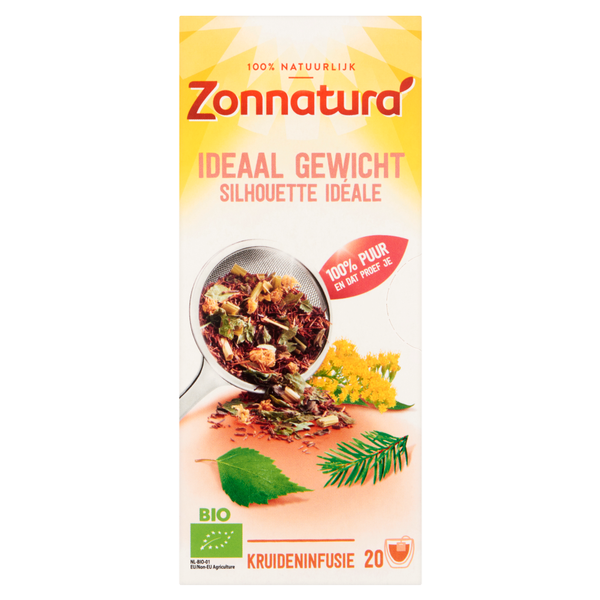 Zonnatura 有機理想體重。 Zonnatura Ideal Weight 是一種僅以純有機草藥製成的茶。它是一種草本混合物,其中包括路易波士茶、樺葉、蒲公英葉、黃花和椴樹花。這種特別精選的混合物味道甜美,適合在一天的忙碌節奏後為自己帶來美好的時刻。有機茶適合多樣化的飲食和健康的生活方式。
