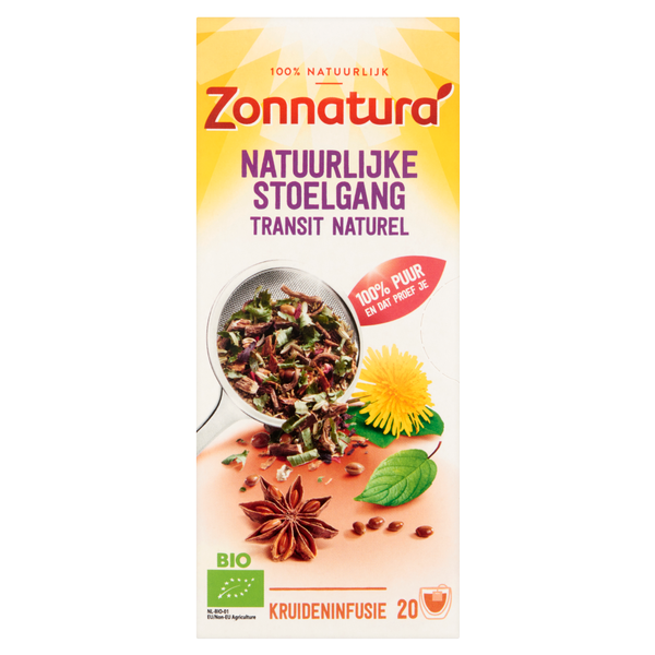 Zonnatura 有機天然排便茶。 Zonnatura 天然潤腸茶是一種僅以純有機草藥製成的茶。它是蒲公英葉、木槿花和茴香籽等的草本混合物。混合物含有特別精選的草藥成分,可以相互補充特性,包括柔和的味道。